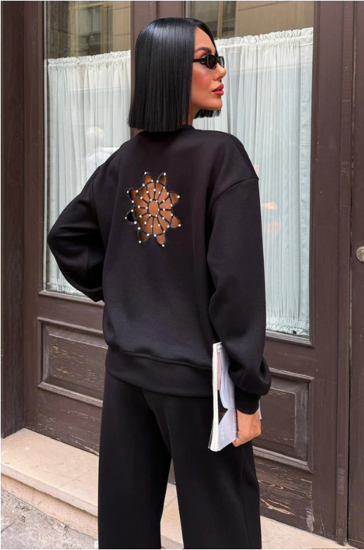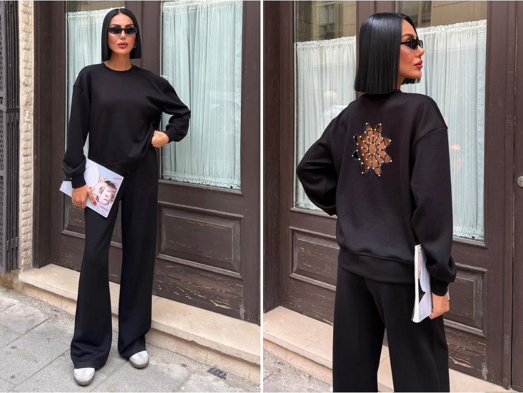 De set bestaat uit een sweatshirt en sweatpants, perfect op elkaar afgestemd voor een gecoördineerde look.