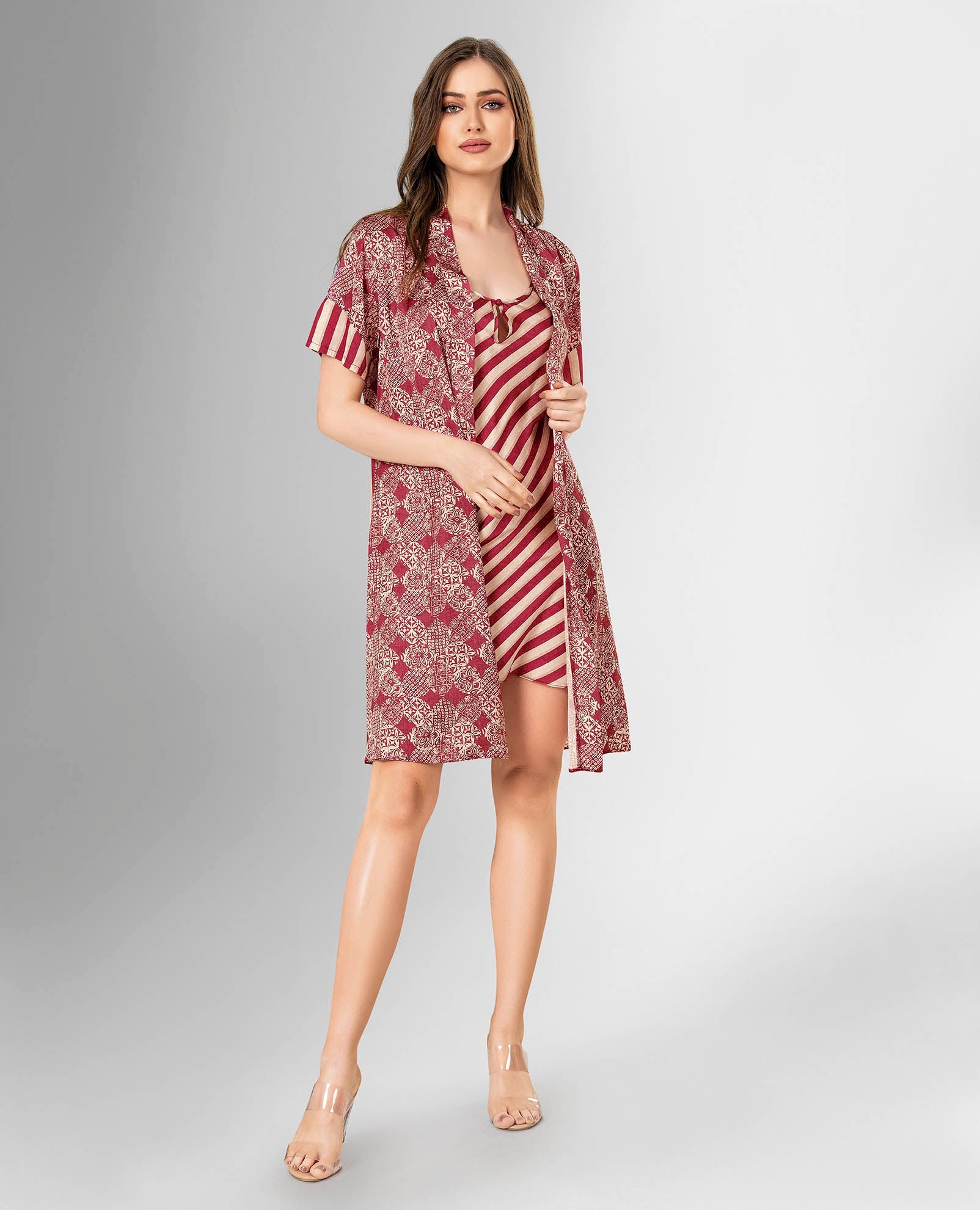 Prachtige 2-delige luxe nachtjapon/ochtendjas kimono set.